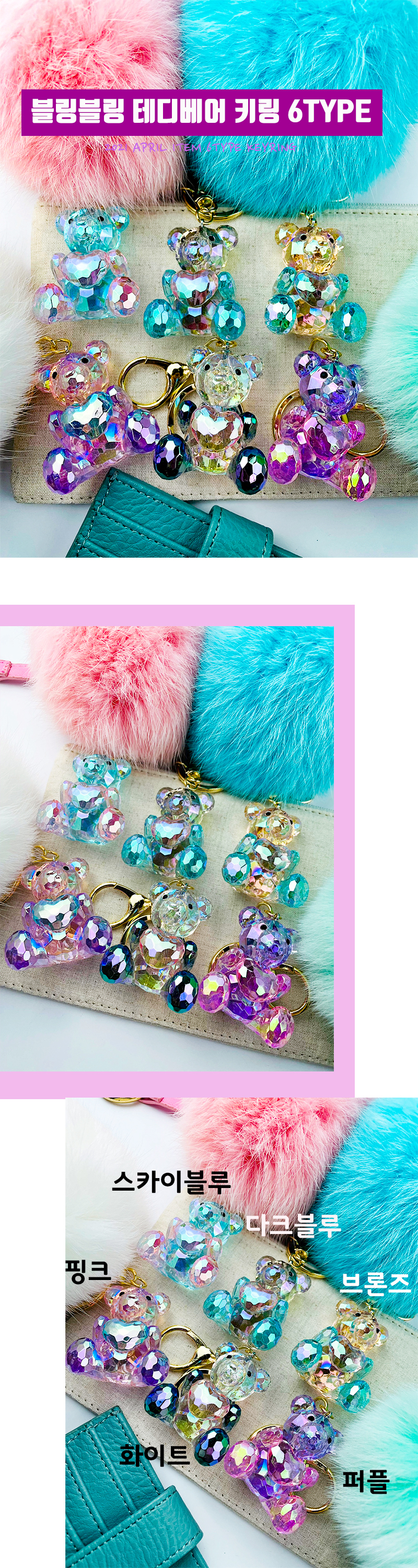 블링블링 테디베어 휴대용 열쇠고리 키링 6type 이미지/