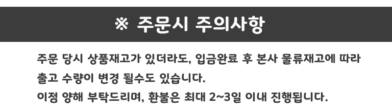 • 다른 제품과 같이 주문할 경우 따로 배송됨을 말씀드립니다.