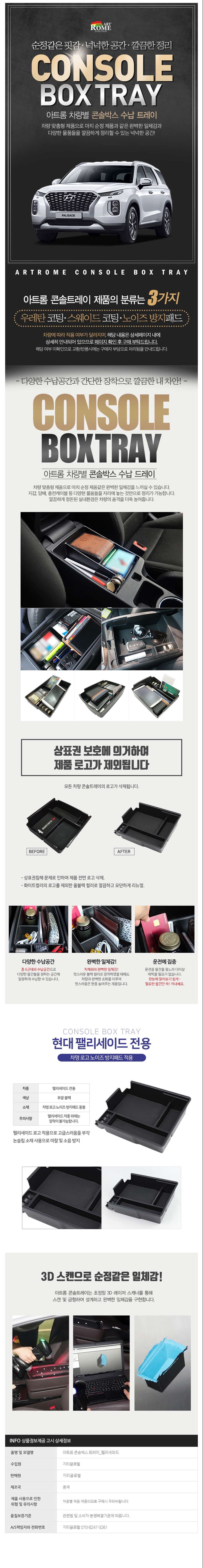 팰리세이드 콘슬정리함 수납트레이 무광블랙