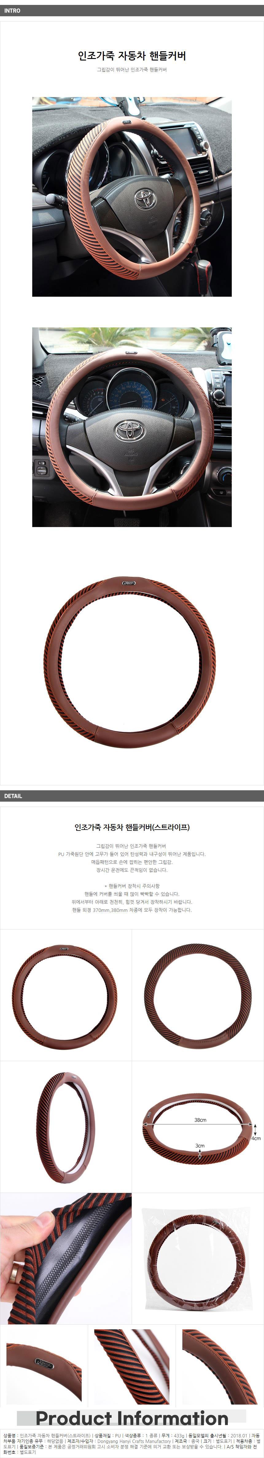 빈티지 인조가죽 핸들커버 스트라이프x2개 차핸들커버 이미지/