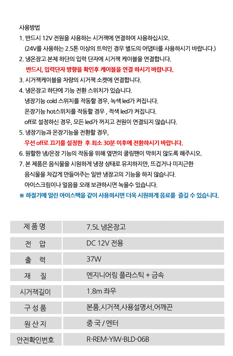 캠핑용냉장고 전기아이스박스 차량용 미니 소형 냉온장고 7.5리터