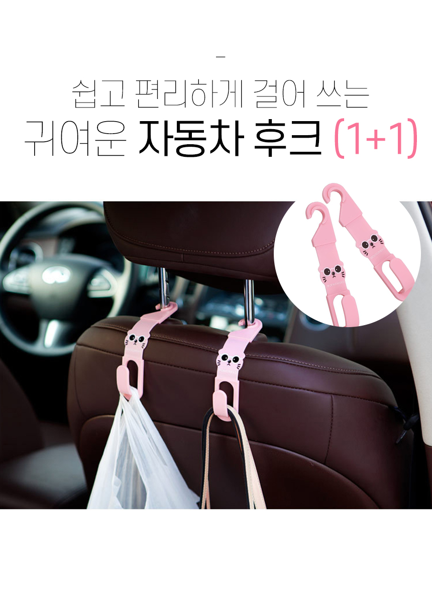 귀여운 이지후크 차량용 후크 2P 가방걸이 옷걸이 스티치후크 다용도차량걸이