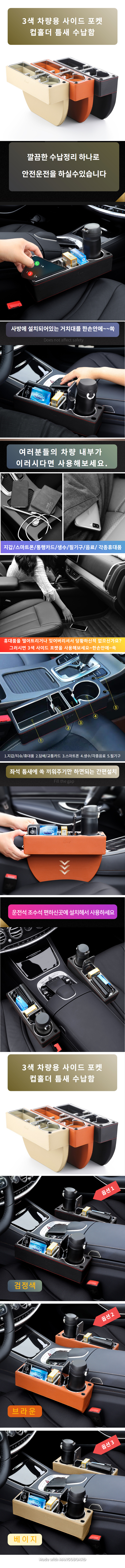 3색차량용 사이드포켓 컵홀더 틈새수납함