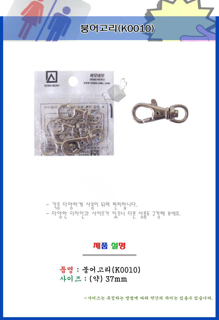 열쇠고리 부자재 붕어고리 37mm 키링DIY 가방악세사리
