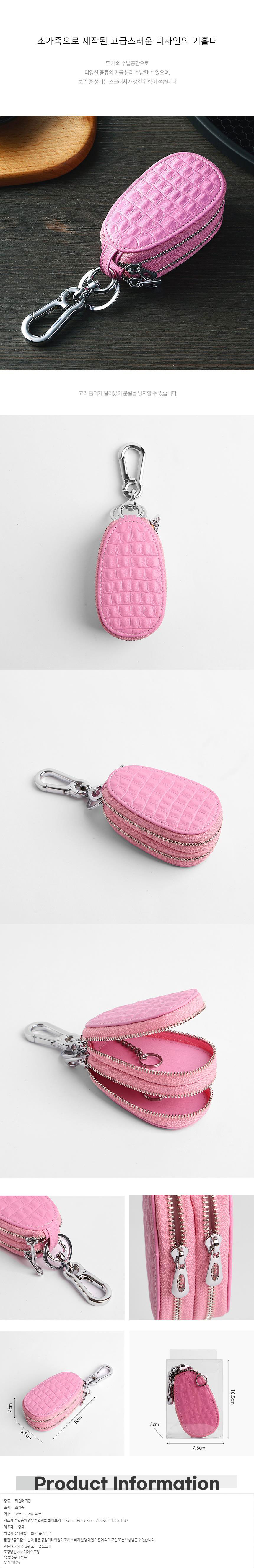 고리형 소가죽 키홀더 지갑 핑크 가죽키케이스 세련된