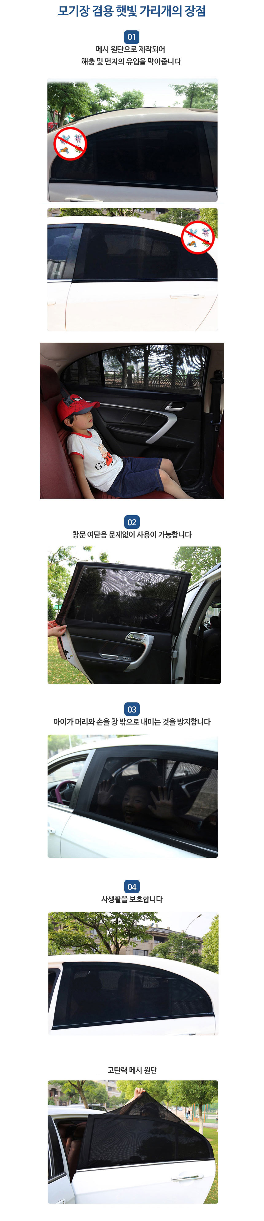 차량용 뒷좌석 햇빛가리개 자동차 모기장 전사이즈(세트)