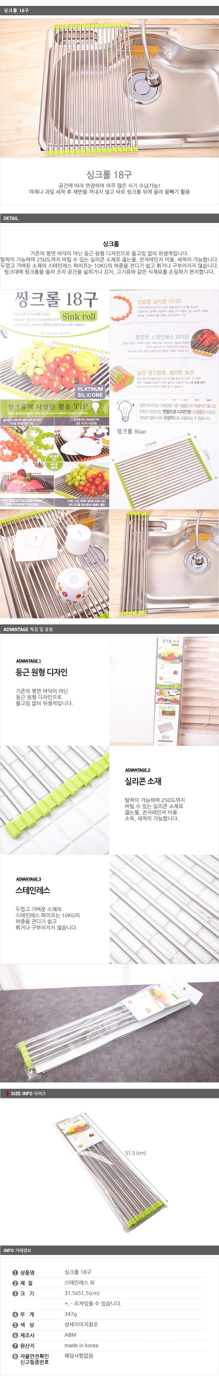 싱크롤 주방용품 싱크대선반 개수대 선반 그린 18구 이미지/