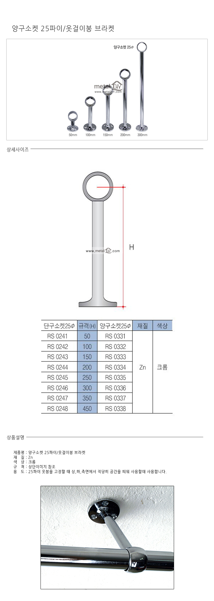 파이프브라켓 25파이 양구 150mm 파이브연결 브라켓소 이미지/