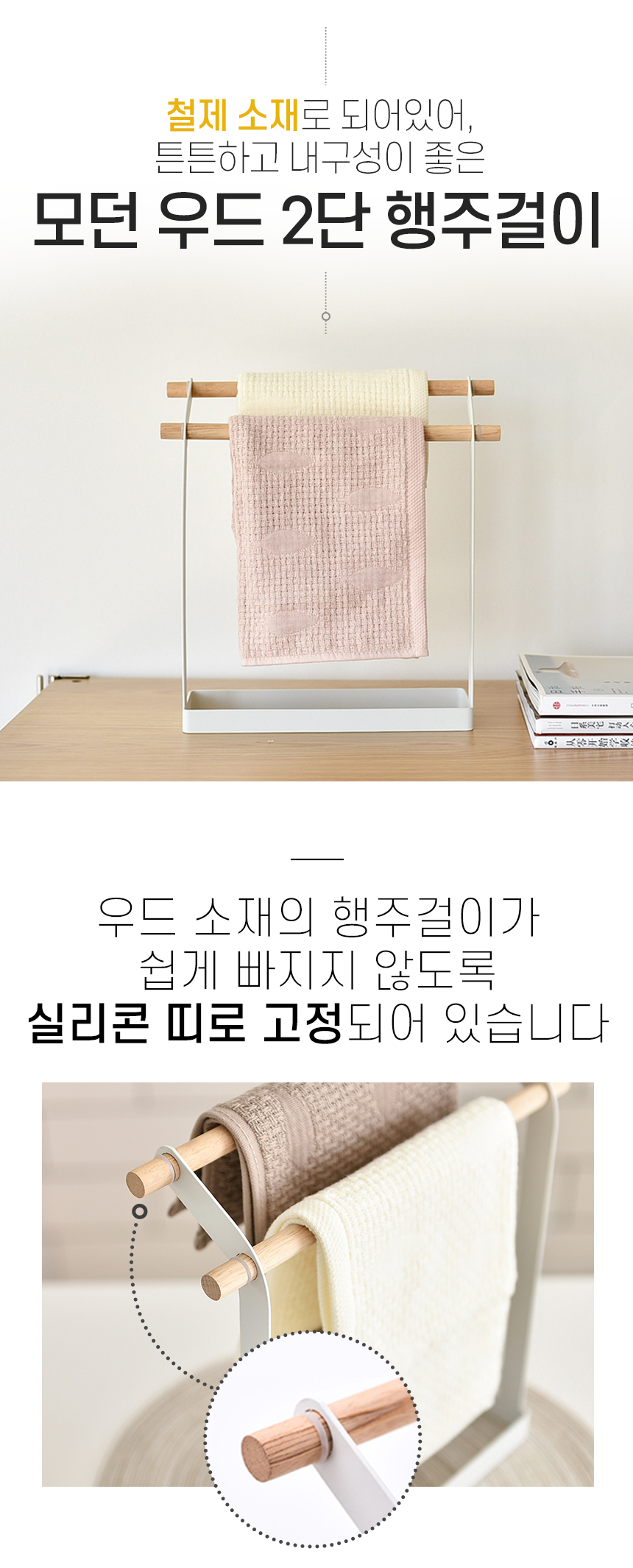 모던 우드2단 행주건조대 주방선반 고무장갑건조대 수건받침 주방소품걸이 이미지/