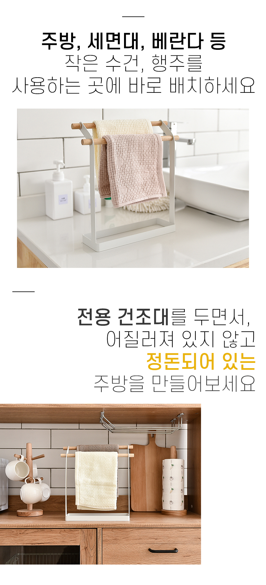 모던 우드2단 행주건조대 주방선반 고무장갑건조대 수건받침 주방소품걸이