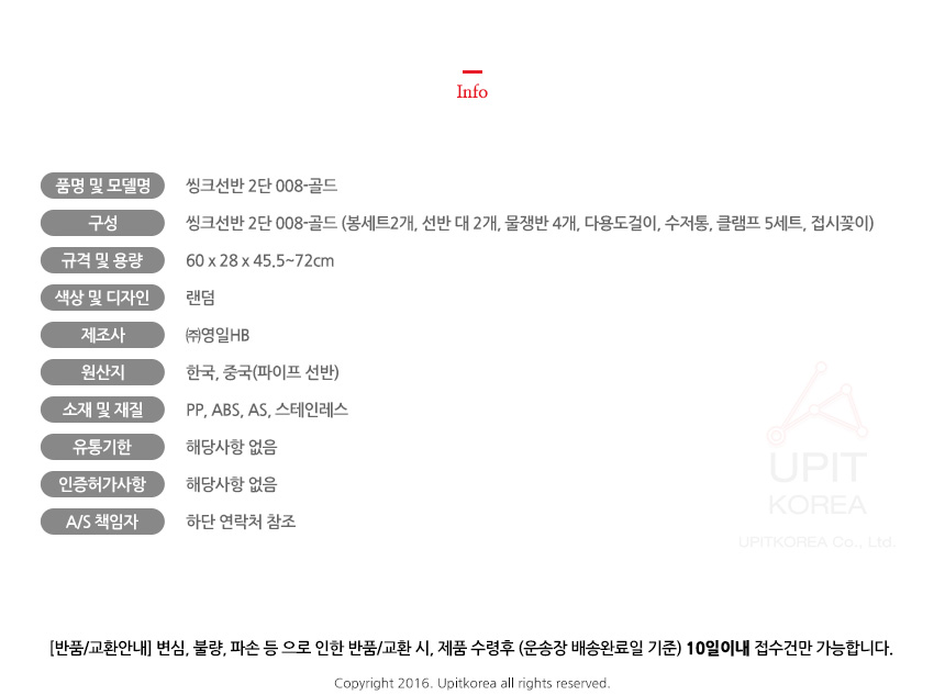 • 반품/환불조건: 도착후 1주일 이내 사용하지 않은 상태에서 가능합니다,초기제품 이상의 경우 동일한 제품으로 1:1 교환원칙, 사용후 제품이상은 A/S를 원칙으로 합니다,