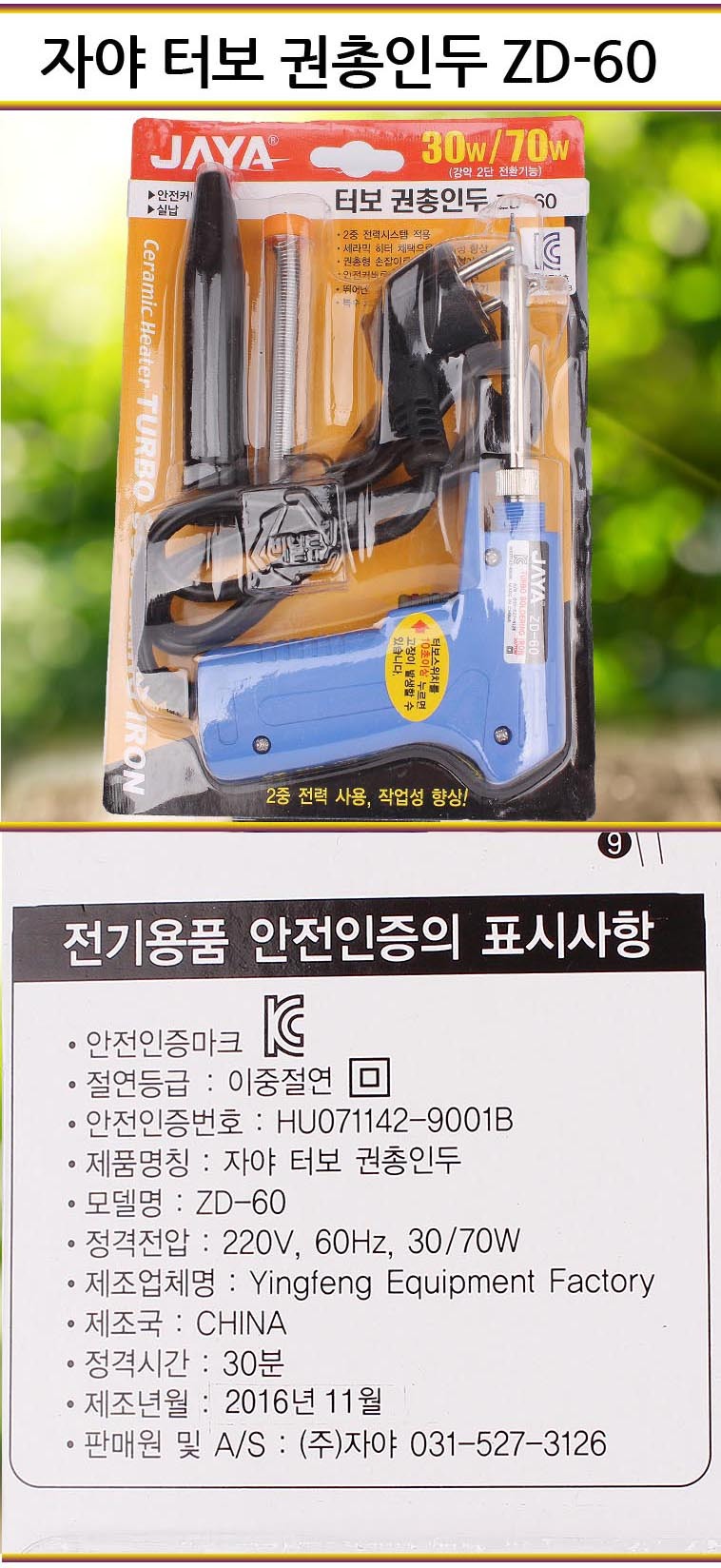 자야 터보 권총인두 ZD-60 이미지/