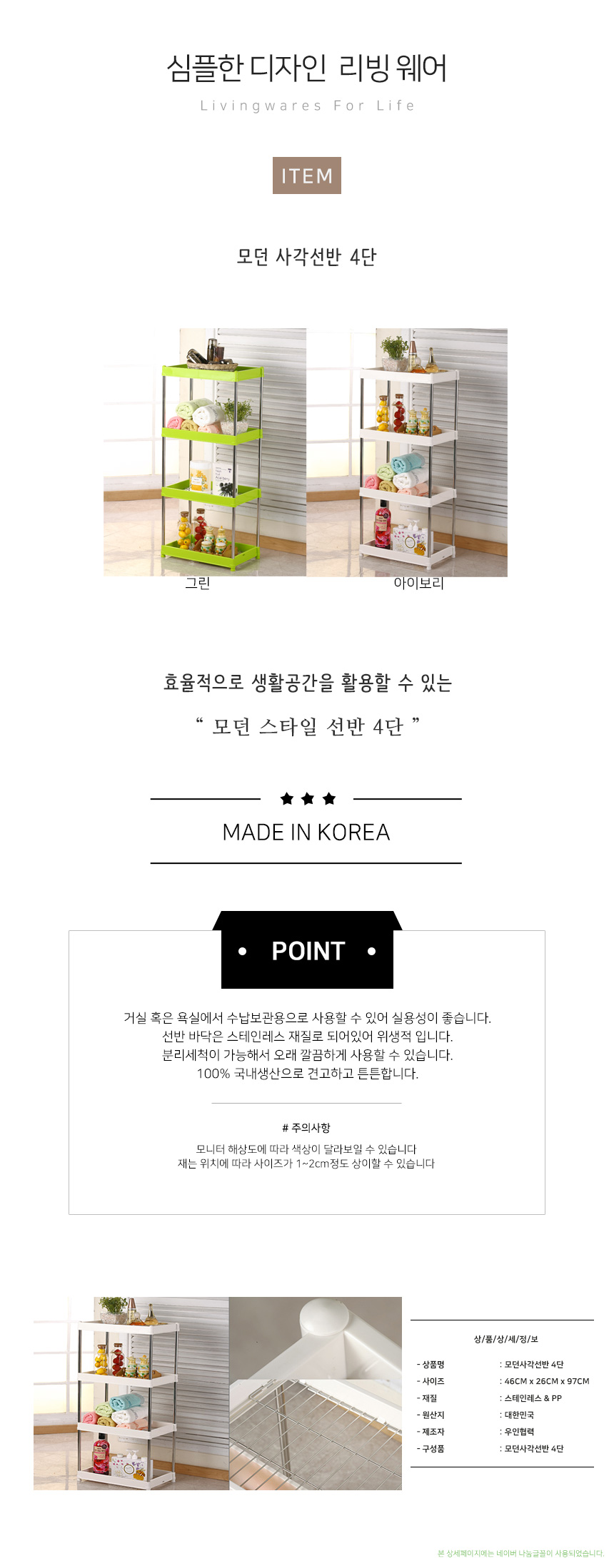 1인가구 사각수납선반 4단 아이보리색 이미지/