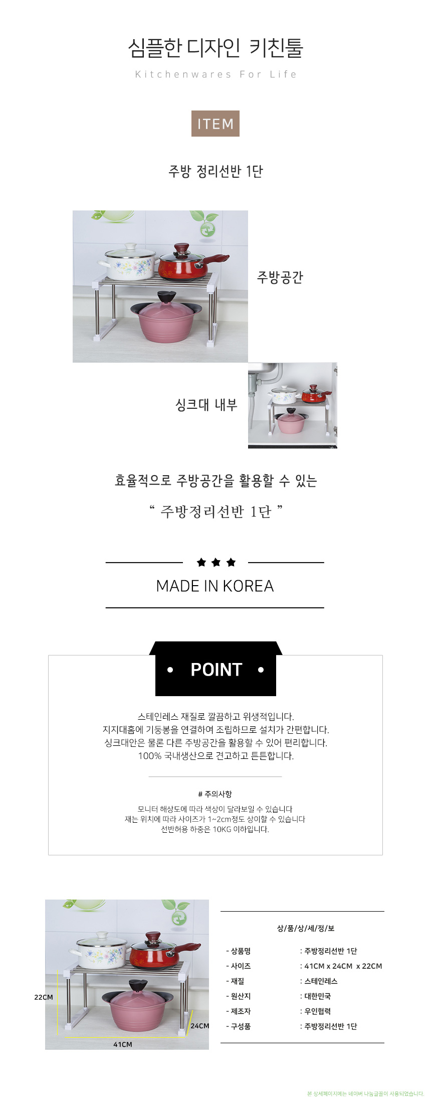 깔끔한 싱크대정리 하부 수납선반 1단 이미지/