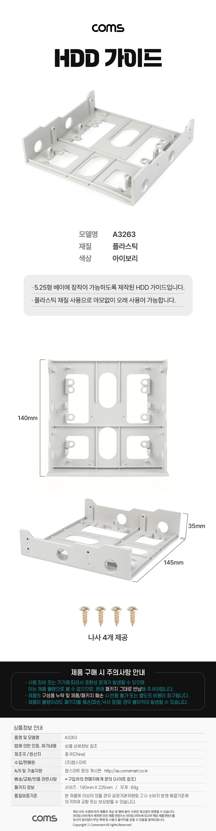 Coms HDD 가이드(앞면 무) 하드디스크 드라이브 Hard disk Drive