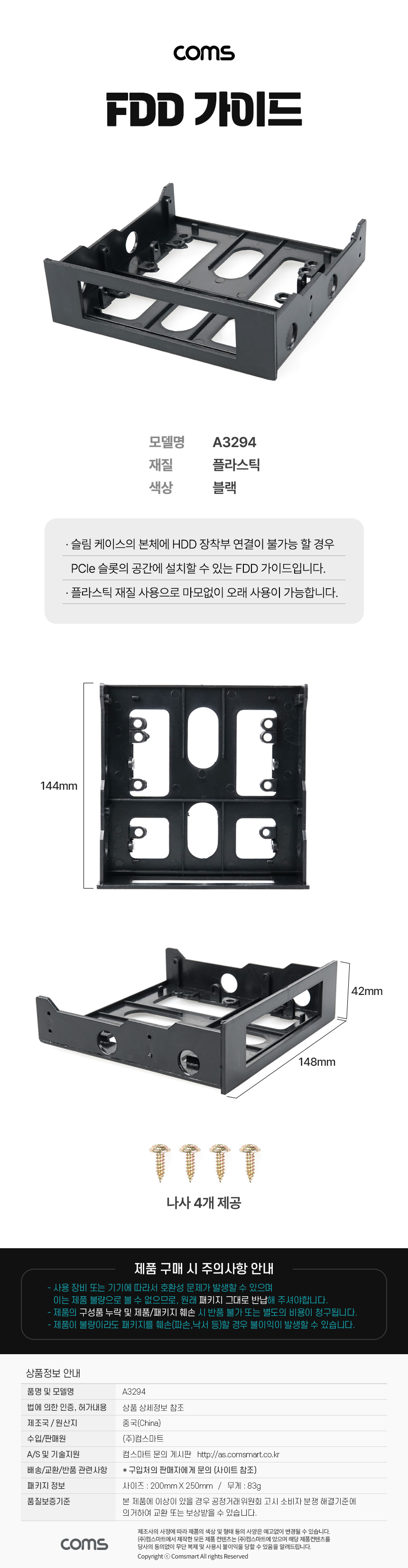 Coms FDD 가이드(검정색/앞면 유무 확인必)