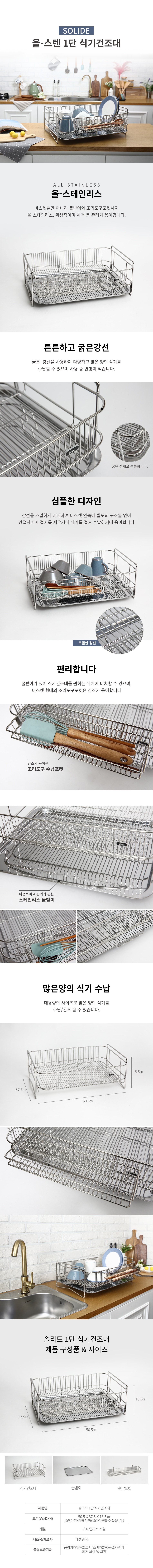 스텐 식기건조대 그릇정리대 1단 특대 선반 이미지/
