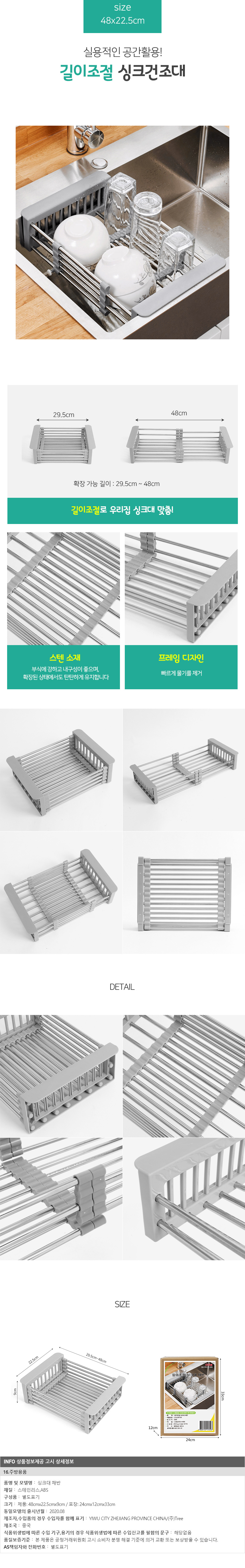길이조절 주방 식기건조대 싱크대 채반 (48cm 그레이)