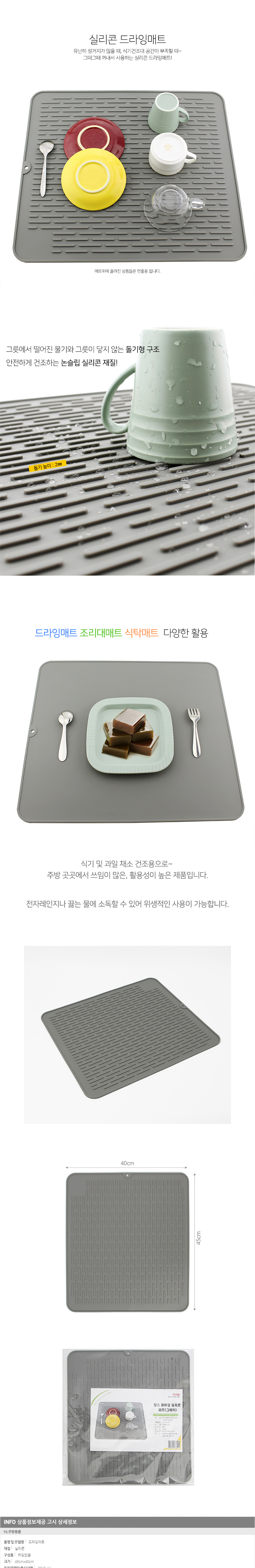 키친홈 실리콘 식기건조대 드라잉매트 (45cm 그레이)
