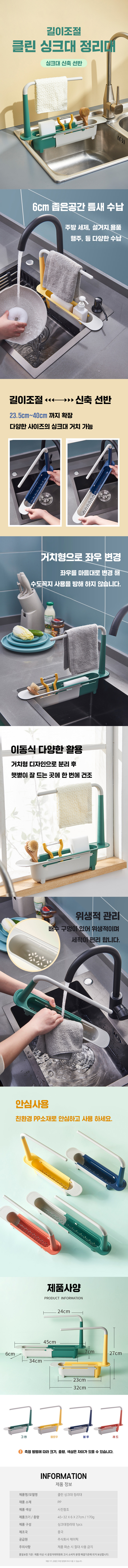 길이조절 정리랙 싱크대정리 수납 다용도 행주걸이 수건걸이 배수구 건조대 물빠짐 랙
