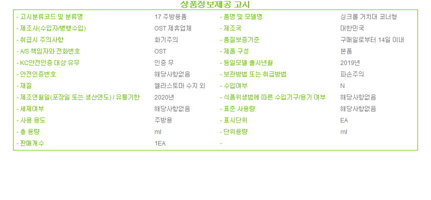 싱크롤 스테인리스 거치대 코너형 싱크대롤 보관