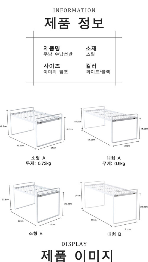 주방 싱크대 선반 씽크인 수납 보관 정리 선반 2단