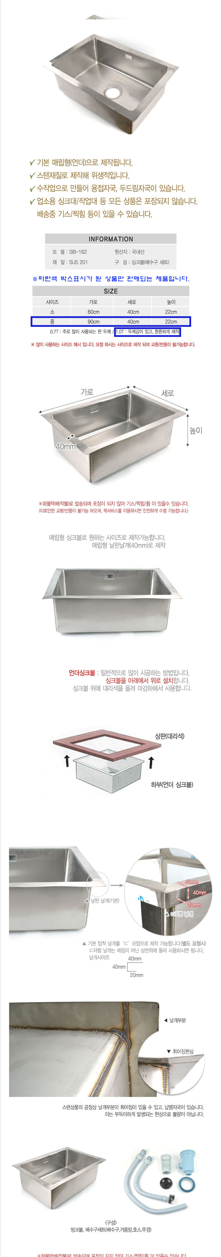 업소용 싱크볼 씽크볼 언더 싱크대 설거지통 1.0T 중 이미지/