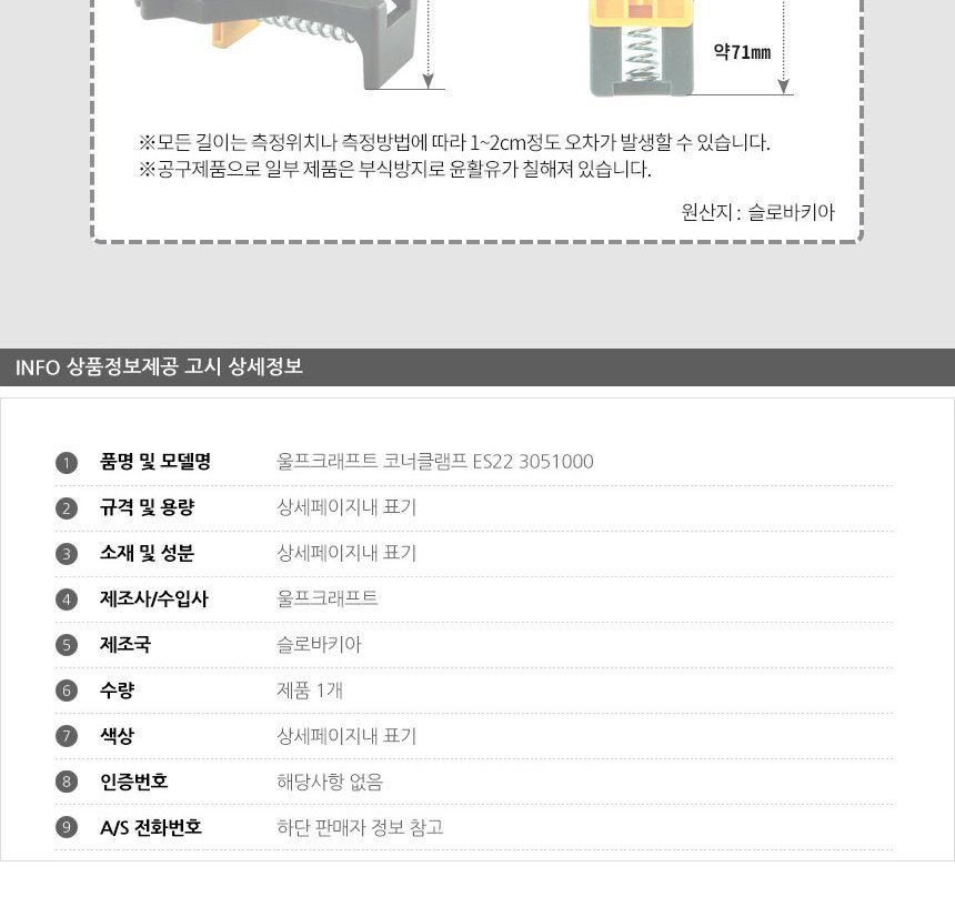 울프크래프트 코너클램프 ES22 3051000 이미지/