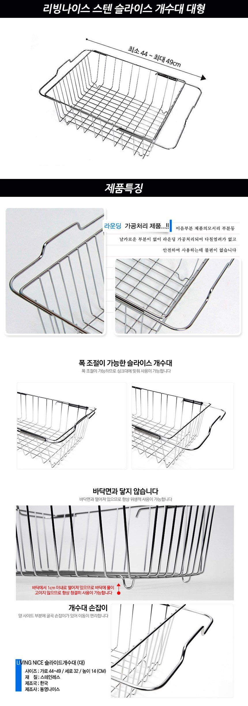 리빙나이스 스텐 슬라이스 개수대 대형