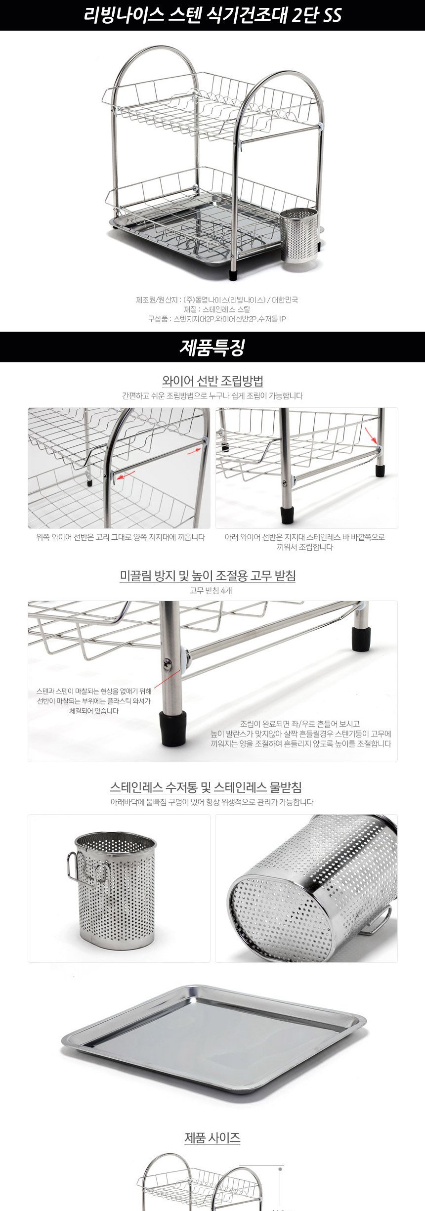 리빙나이스 스텐 식기건조대 2단 SS