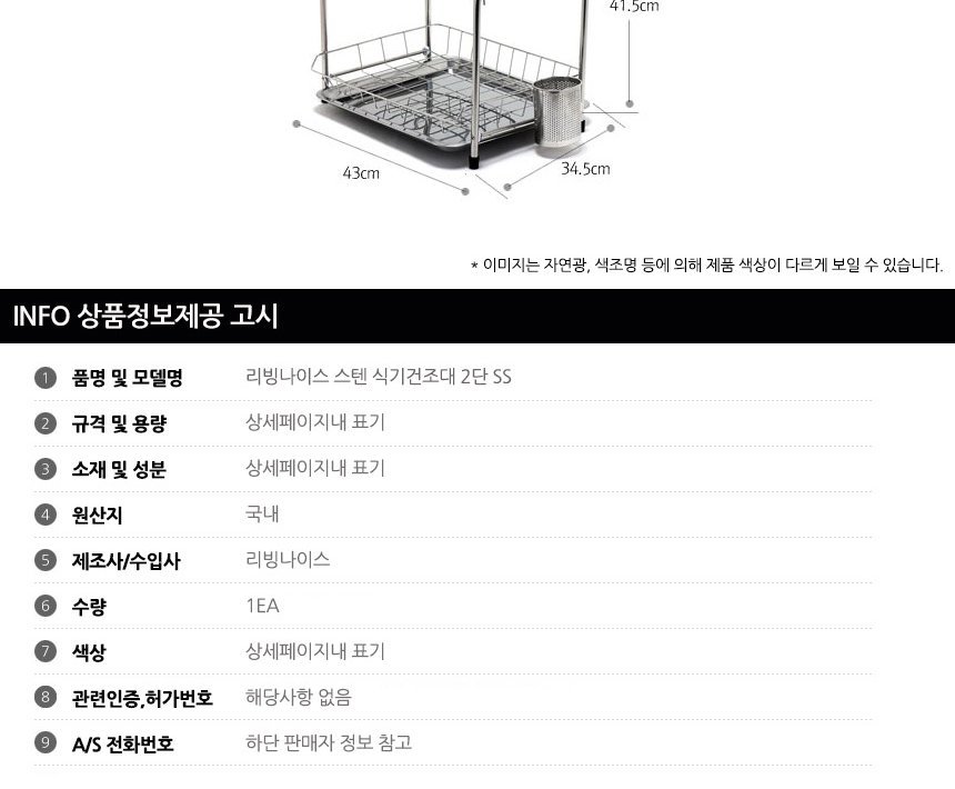 리빙나이스 스텐 식기건조대 2단 SS 이미지/