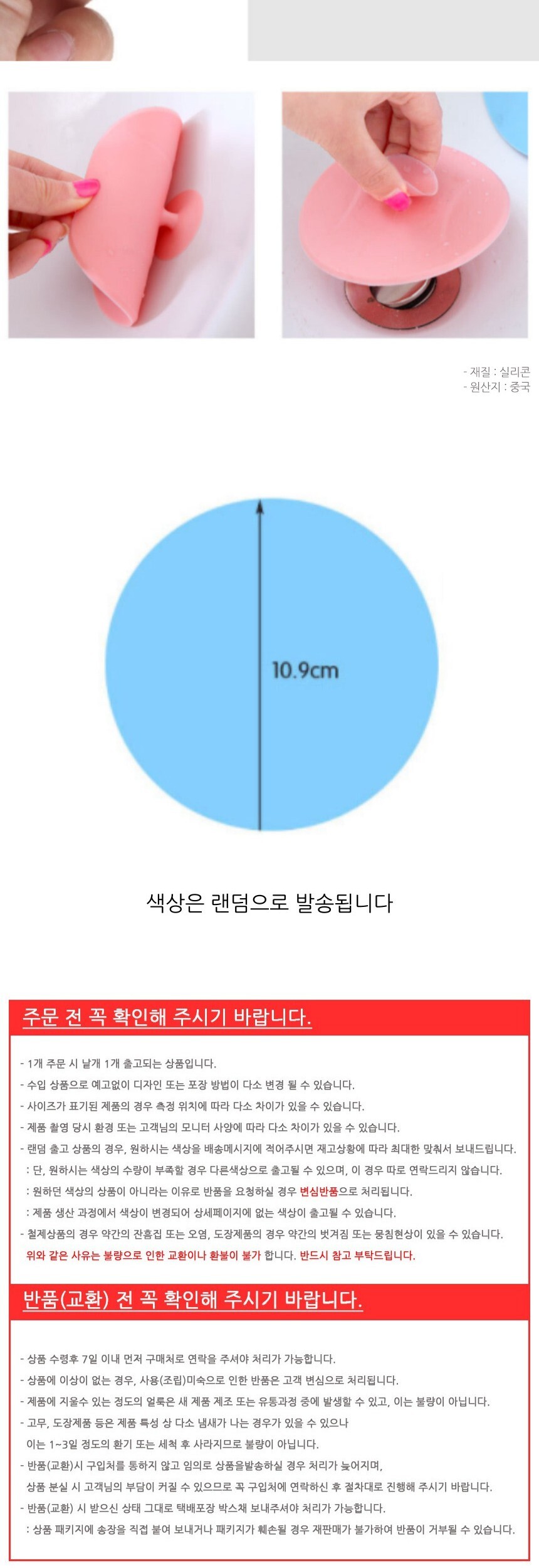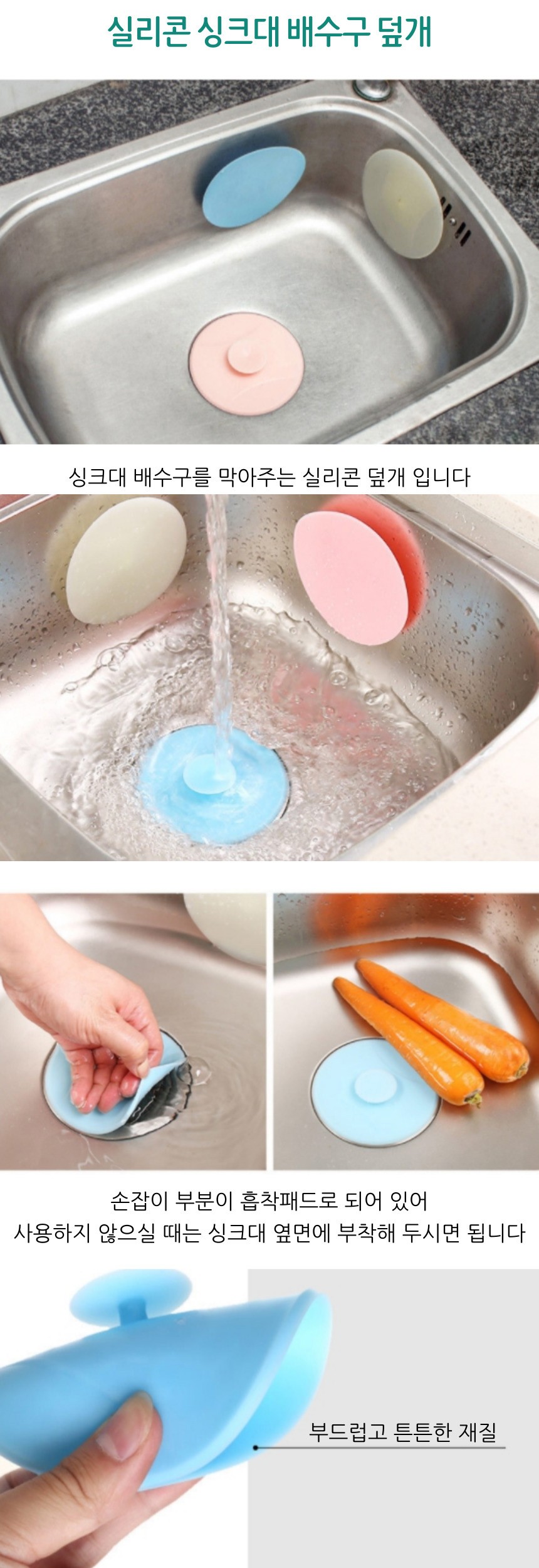 싱크대 실리콘 간편 배수구 덮개