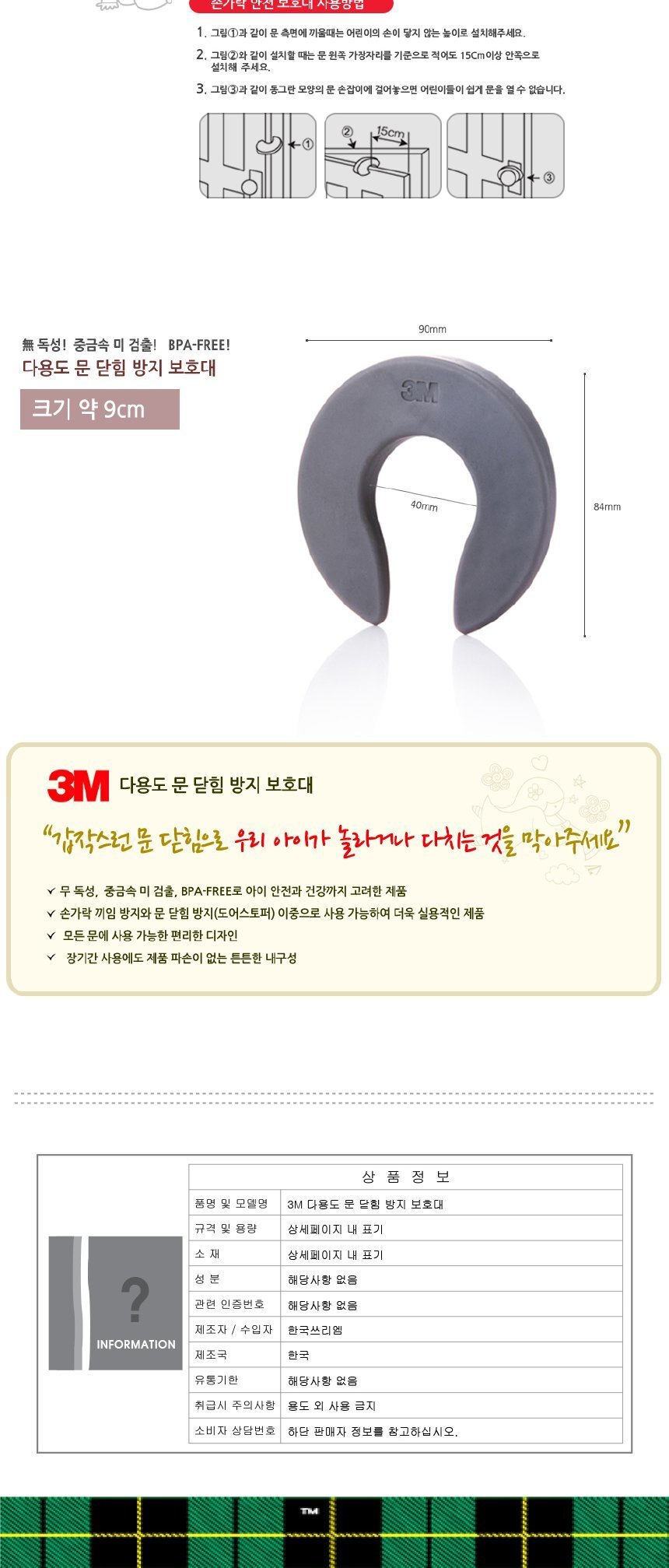 3M 유아안전 다용도 문 닫힘 방지 보호대