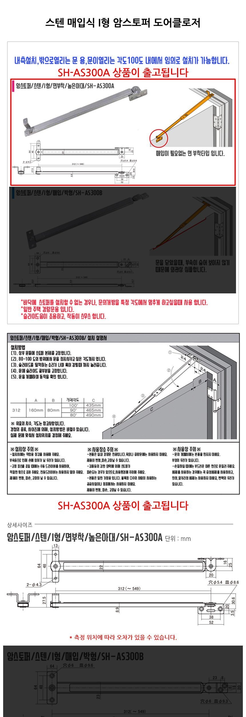 스텐 부착식 I형 암스토퍼 도어클로저 SH-AS300A