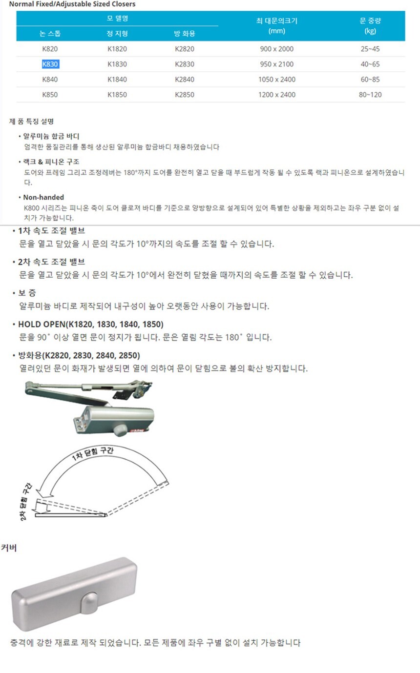 삼화 킹 830 도어체크 도어클로저 이미지/