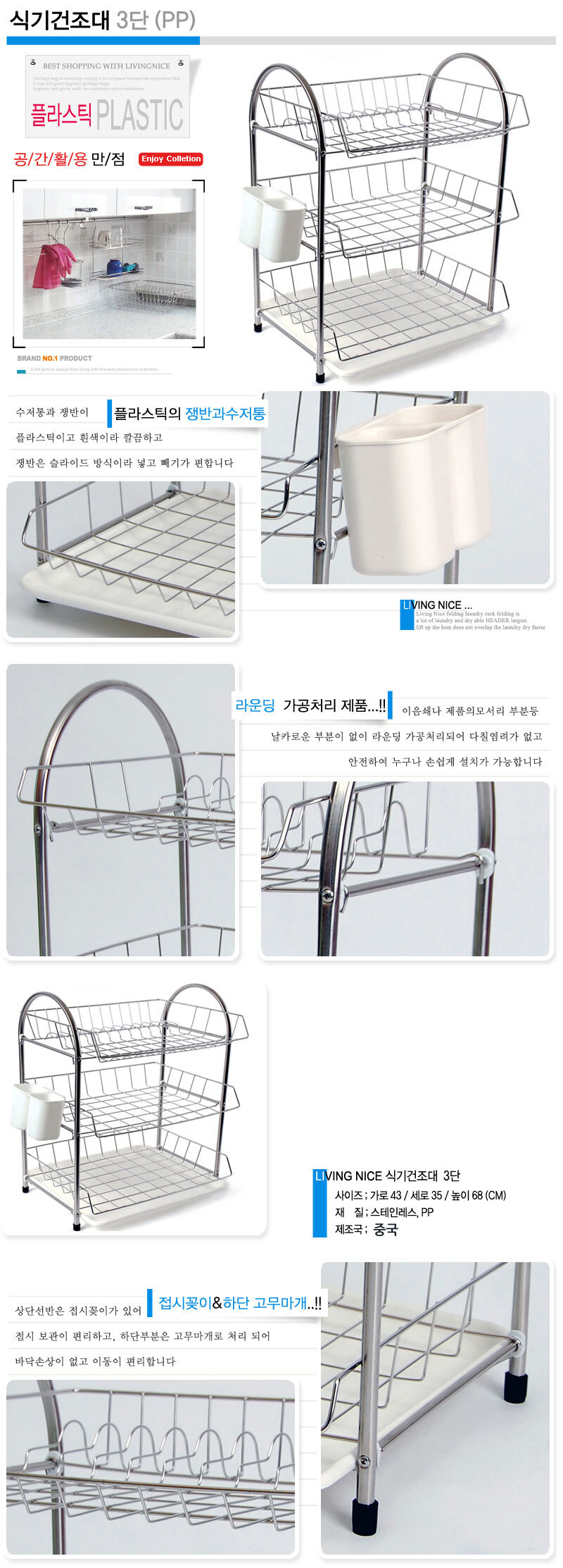 식기건조대 3단 1P 식기건조대 주방식기건조대 건조대