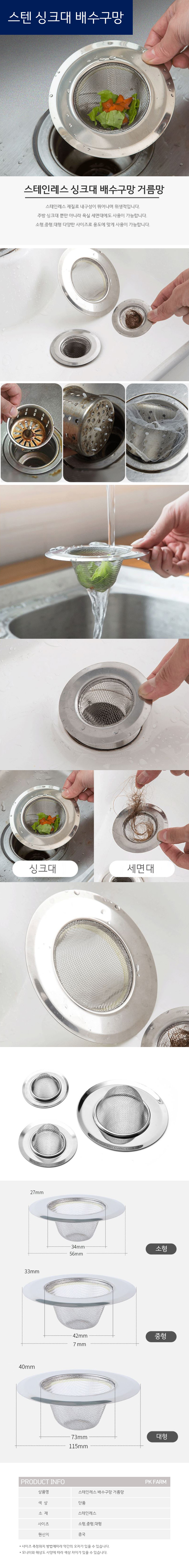 [PK] 스테인레스 싱크대 배수구망 거름망 스텐 음식물 세면대 욕실 주방