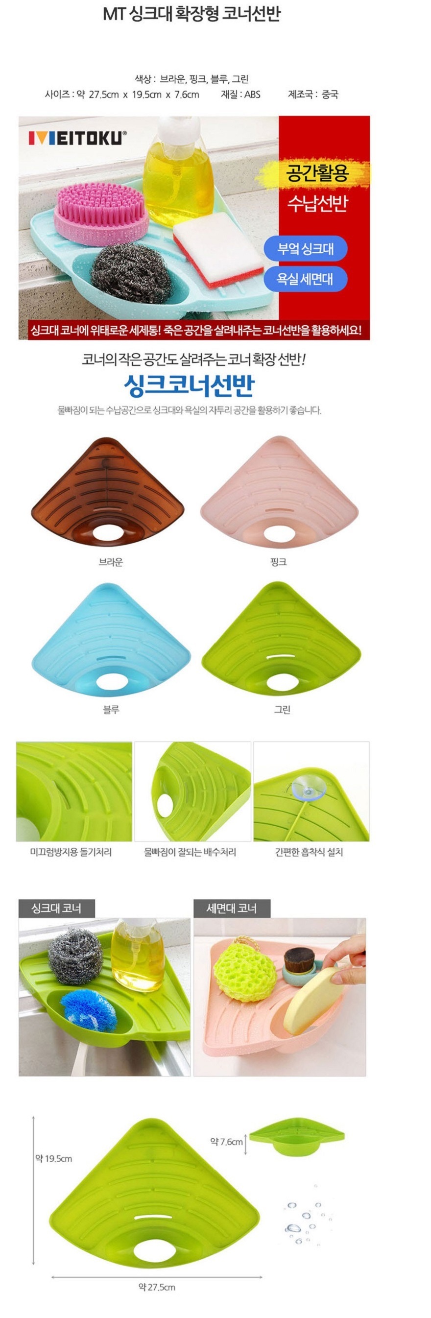 흡착 싱크대 코너선반(약27.5x19.5xH7.6cm) 욕실 부엌