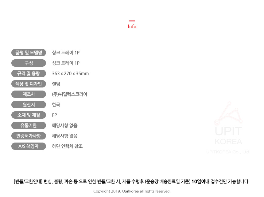 싱크 트레이 1P 3502 이미지/