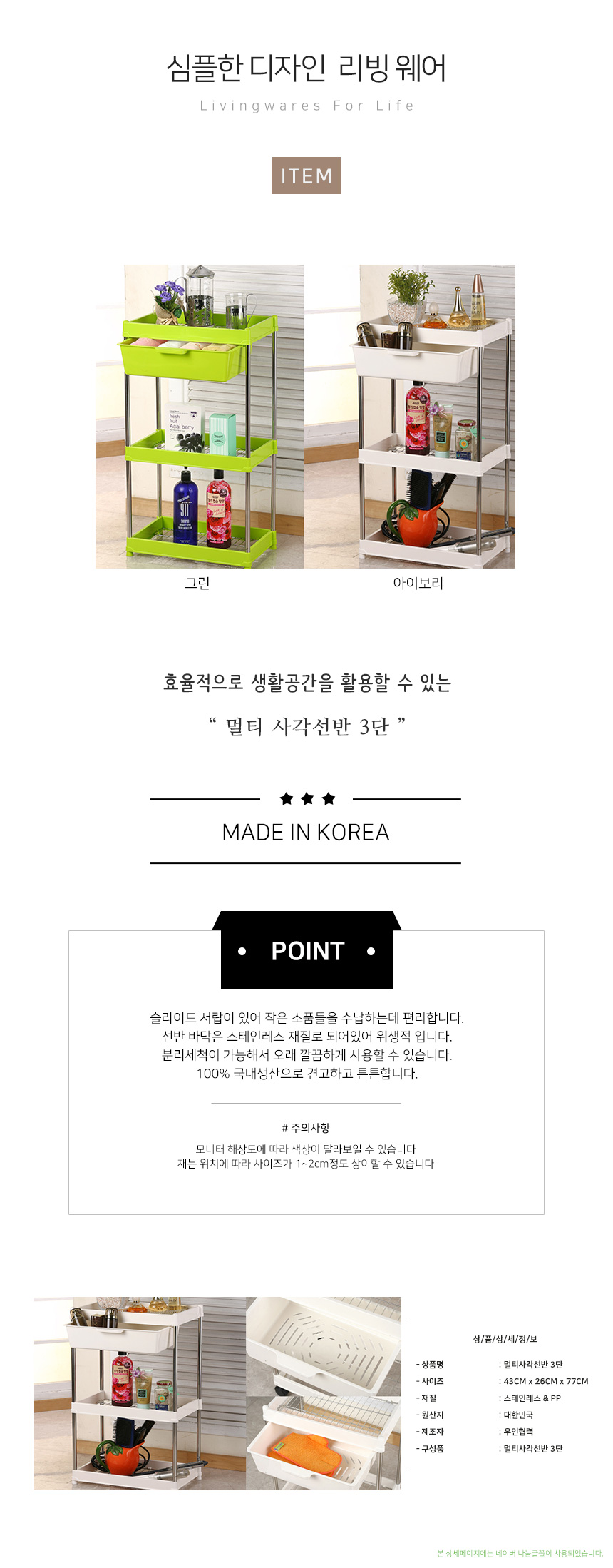 1인가구 미니 서랍식 수납선반 3단 아이보리색