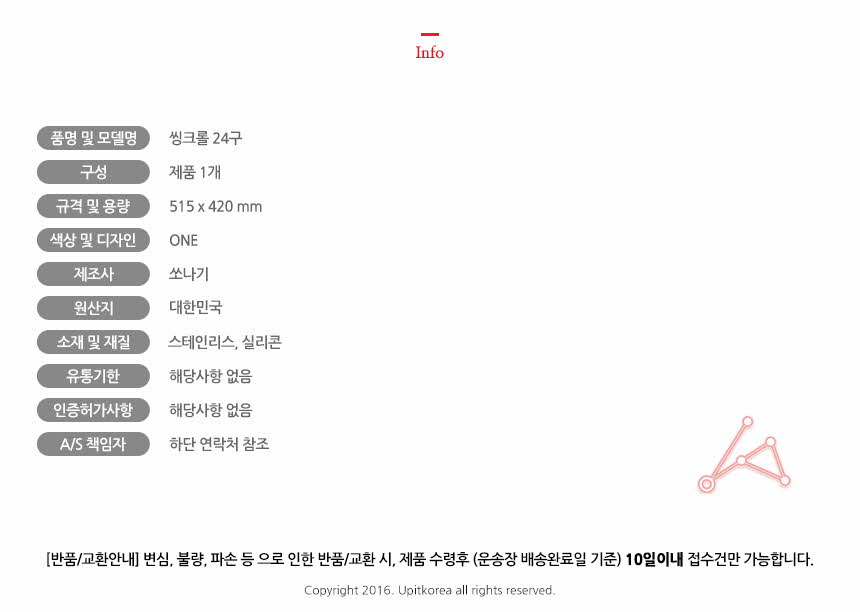 • 초기제품 이상의 경우 동일한 제품으로 1:1 교환원칙, 사용후 제품이상은 A/S를 원칙으로 합니다.