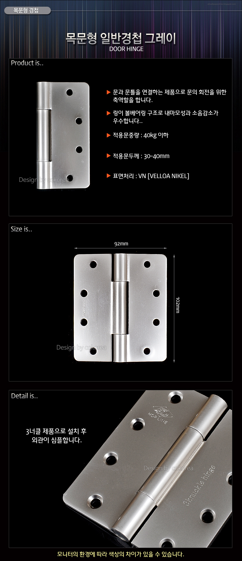도어부속품 나무문 일반경첩 그레이 1각(3개) 이미지/
