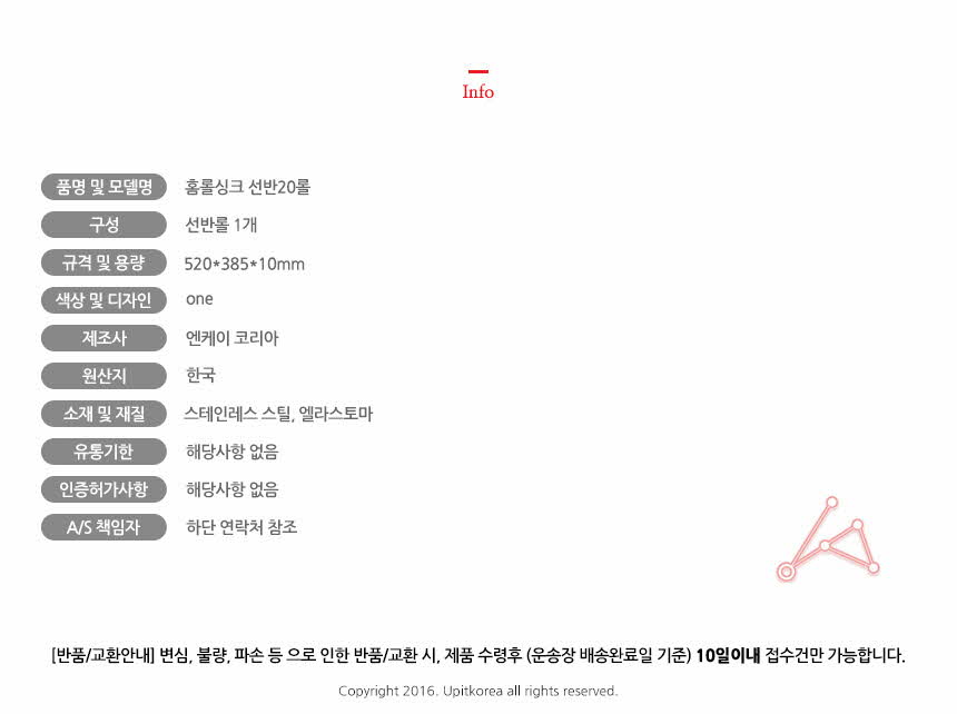 • 반품/환불조건: 도착후 1주일 이내 사용하지 않은 상태에서 가능합니다,초기제품 이상의 경우 동일한 제품으로 1:1 교환원칙, 사용후 제품이상은 A/S를 원칙으로 합니다,