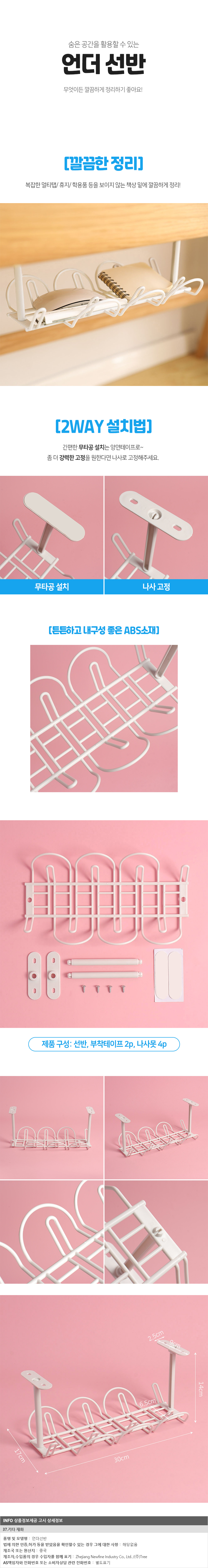 공간활용 소품정리 책상 하부수납 언더선반 (화이트)
