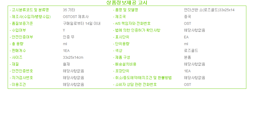 언더선반 (소) 로즈골드 33x25x14 수납 보조선반 정리 보관