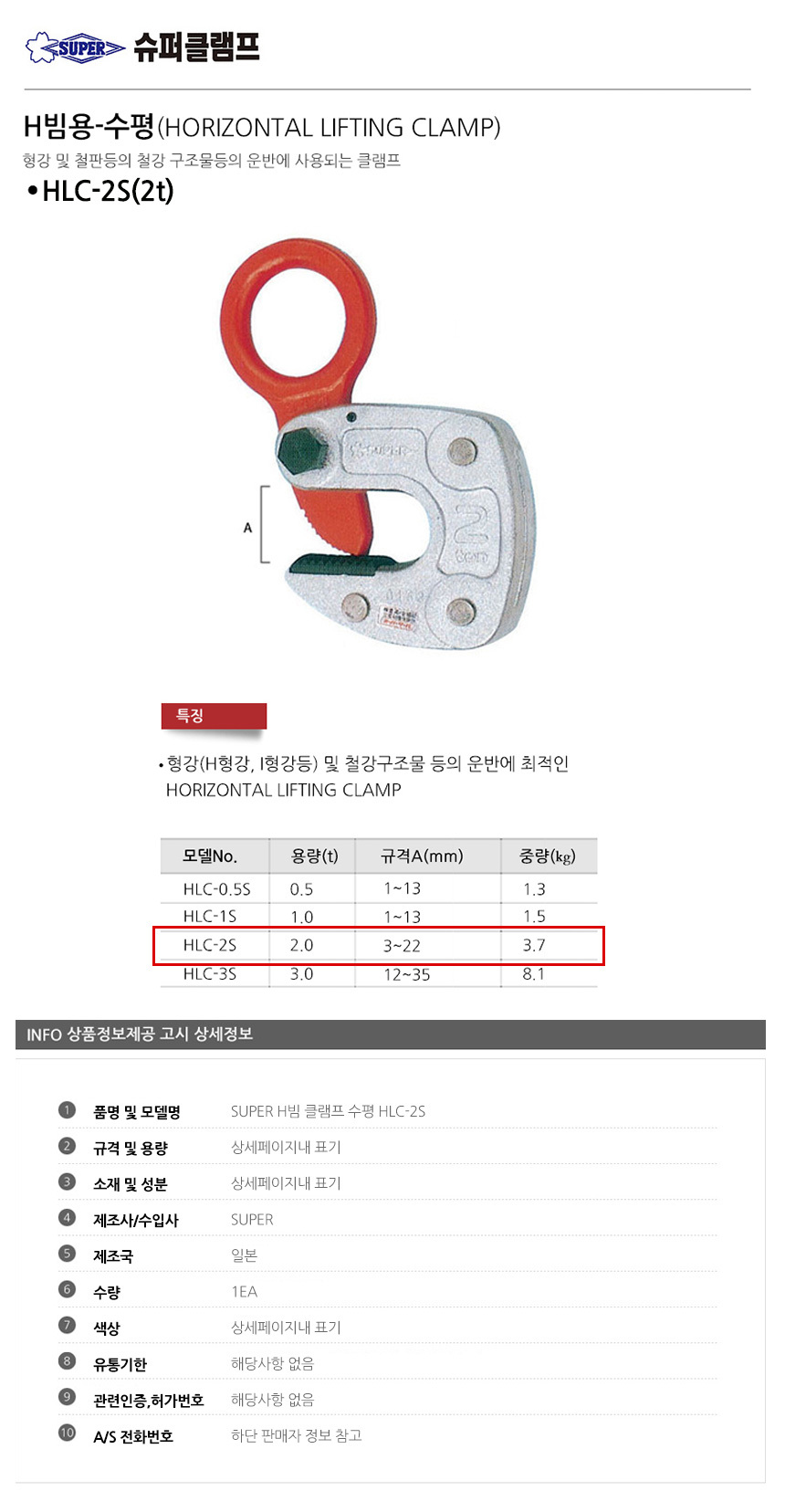 SUPER 클램프 빔용 수평클램프 HLC-2S 이미지/