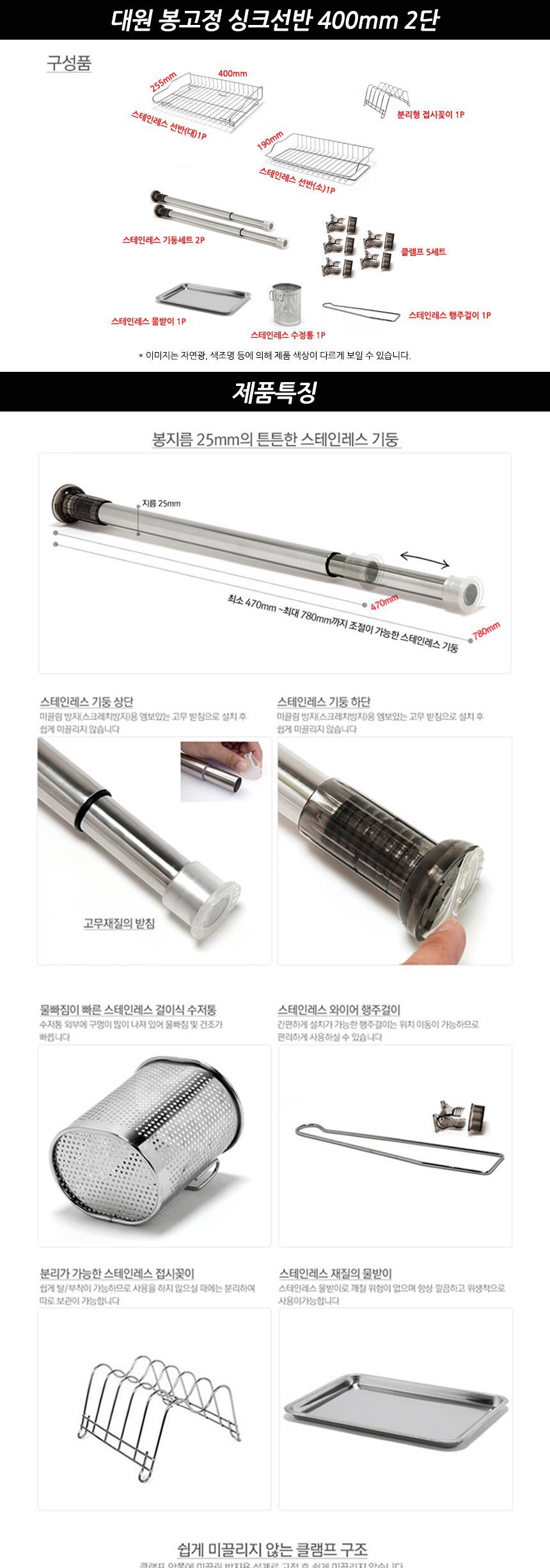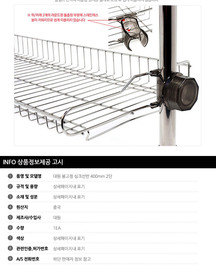 대원 봉고정 싱크선반 400mm 2단 이미지/