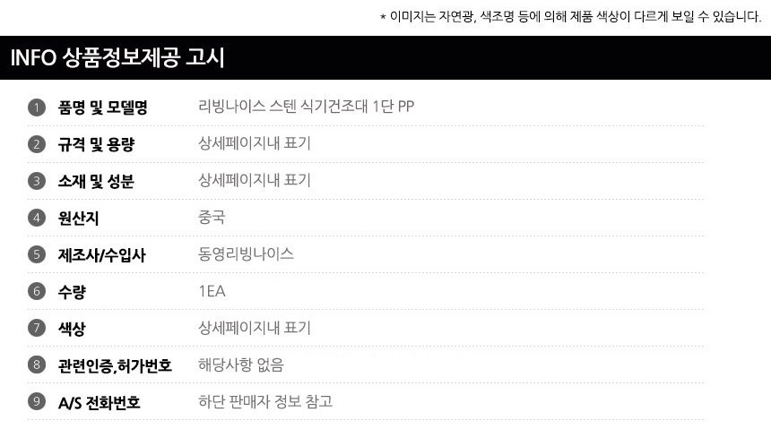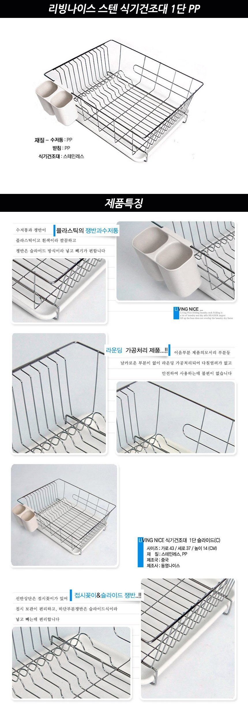 리빙나이스 스텐 식기건조대 1단 건조망 PP 이미지/