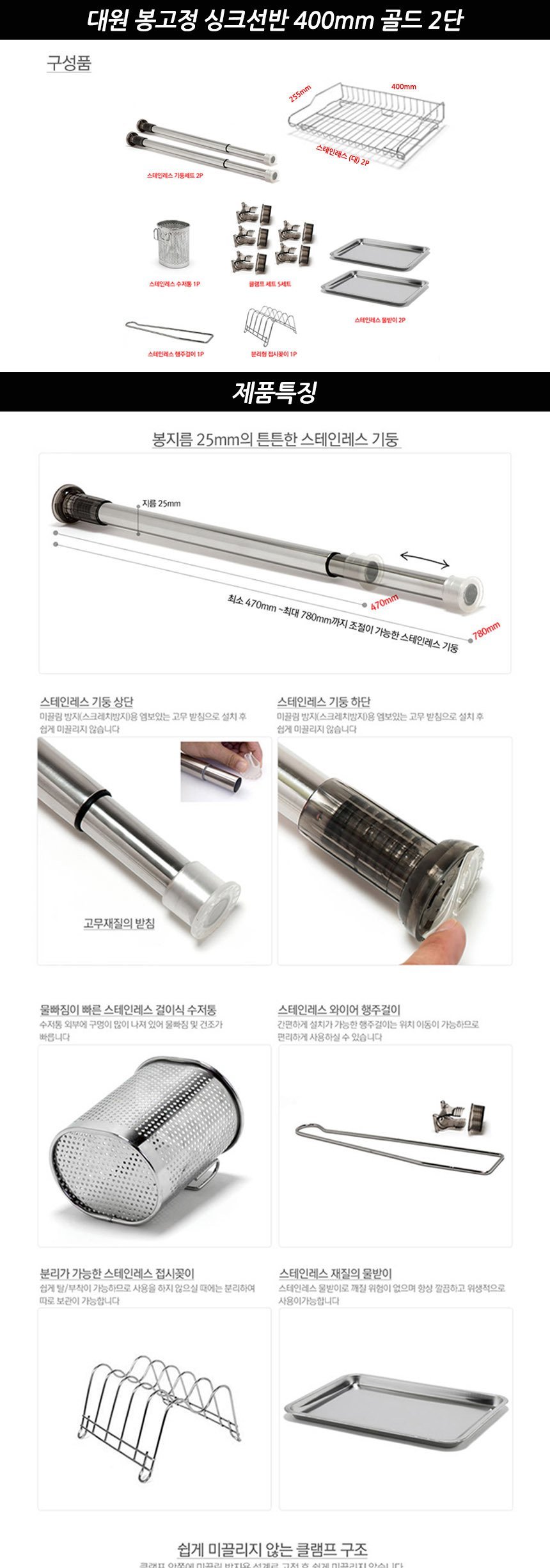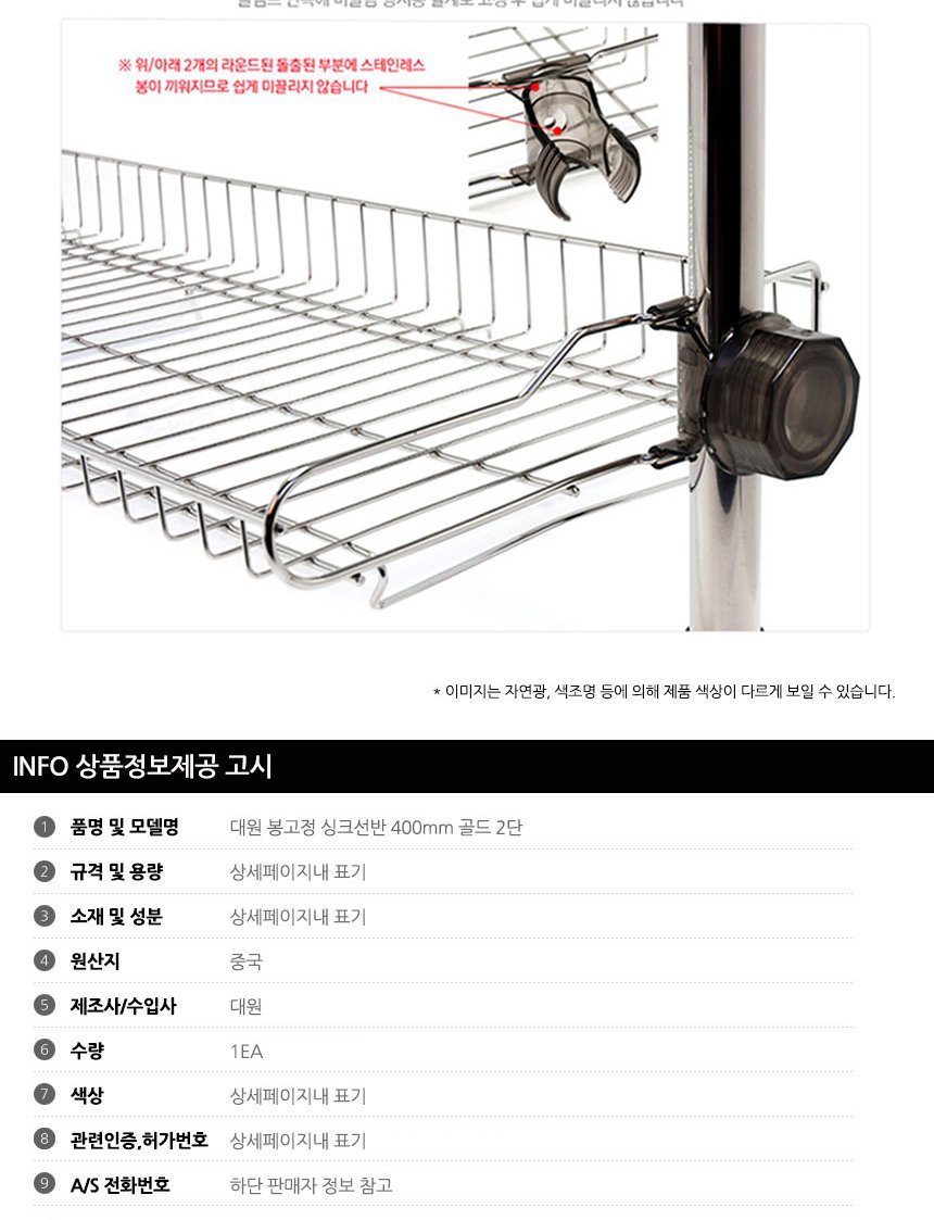 대원 봉고정 싱크선반 400mm 골드 2단 이미지/