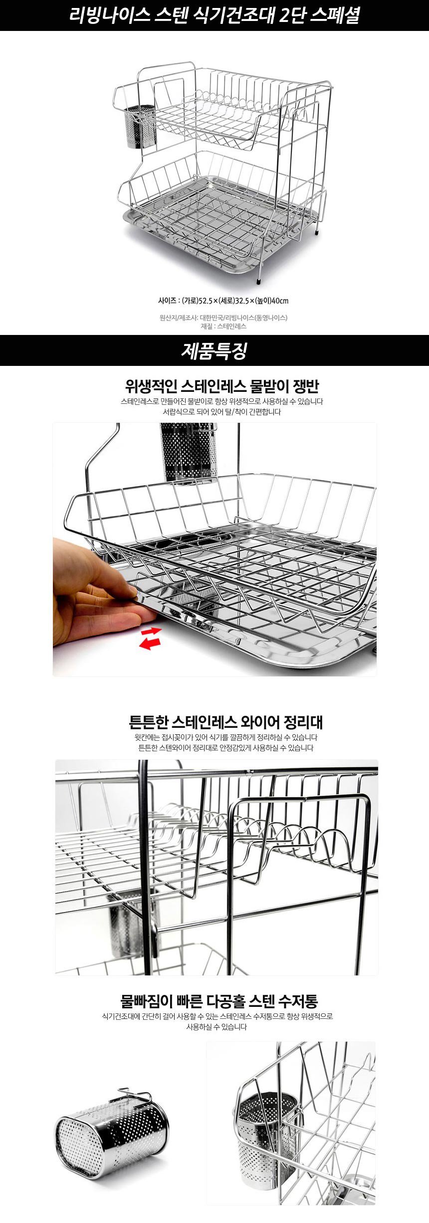 리빙나이스 스텐 식기건조대 2단 스폐셜 이미지/